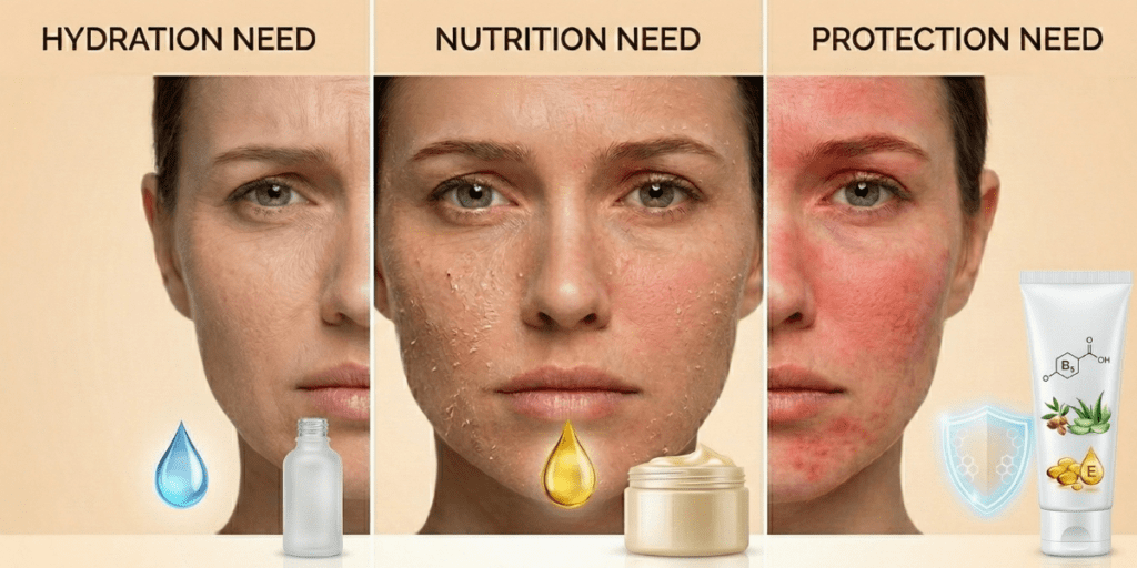 إشارات تخبرك بما تحتاجه بشرتك فعلاً (ترطيب أم تغذية أم حماية)